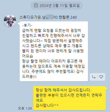 스튜디오가온 렌탈폰 후기