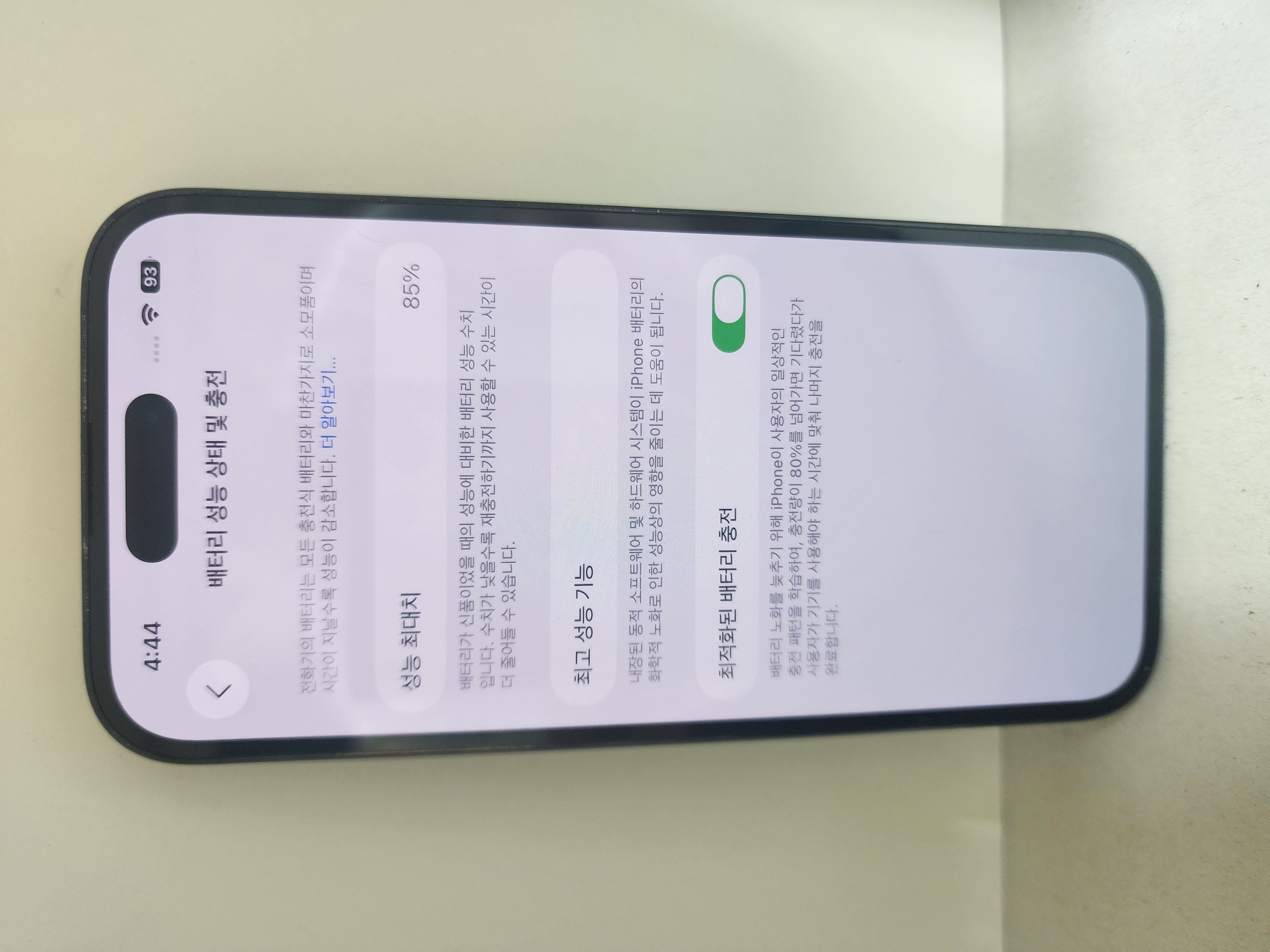 배터리 성능 85%