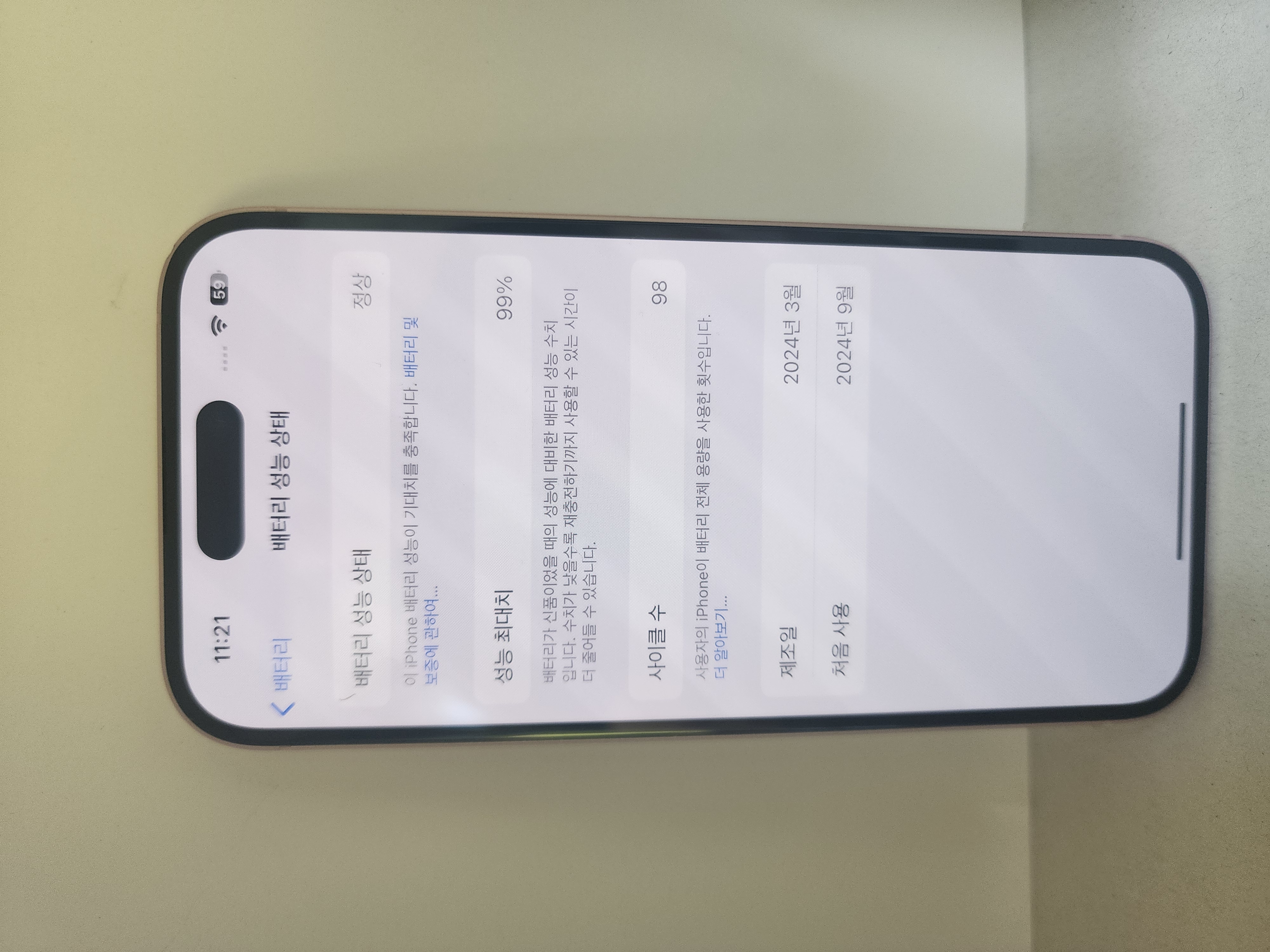 배터리 성능 99%